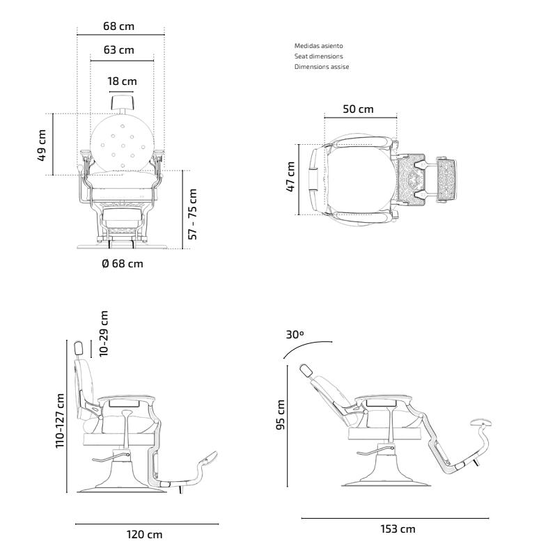 Fotel barberski CHECK Brown - kolor brązowy