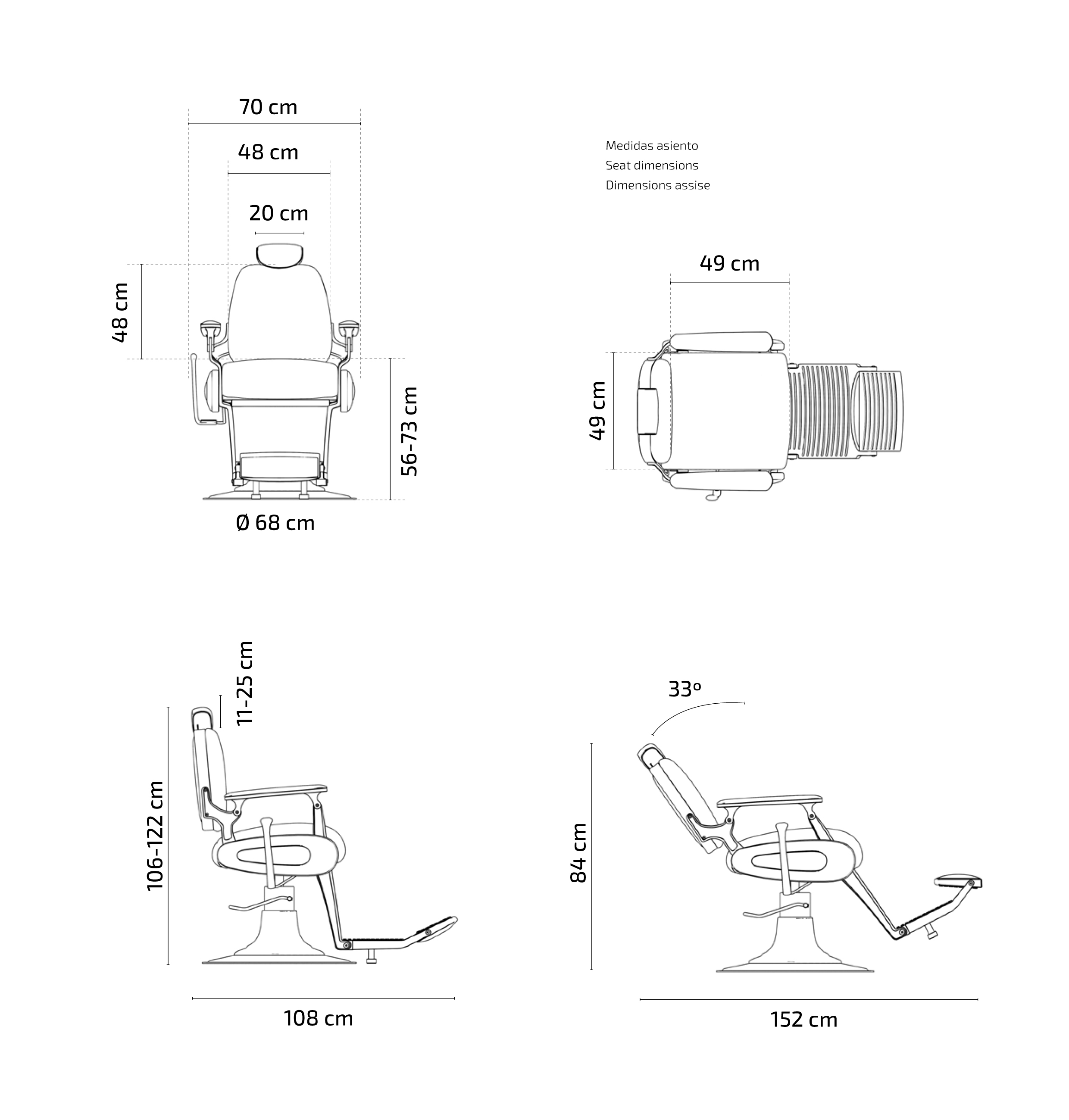 Fotel, który wykracza poza normy. Klasyczny, wysokiej jakości fotel barberski z odchylanym oparciem i podnóżkiem. Tapicerowana ekoskóra. Szybko odzyskująca się pianka o dużej gęstości. Odlewana aluminiowa rama. Pompa hydrauliczna z regulacją wysokości.